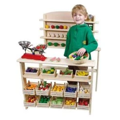 Obst und Gemüse sollten abgewogen werden, dafür braucht der kleine Kaufmann natürlich eine Waage.