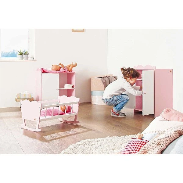 Das Pinolino Puppenwiege Jasmin lässt Kinderherzen höher schlagen. Das passende Bettzeug wird gleich mitgeliefert und macht die Puppenwiege bereit für die erste müde Puppe.
