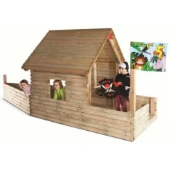 EXIT TOYS EXIT Loft 750 Holzspielhaus – Rot Extra Hoch – Mit Sandkasten, Rutsche & Anbau